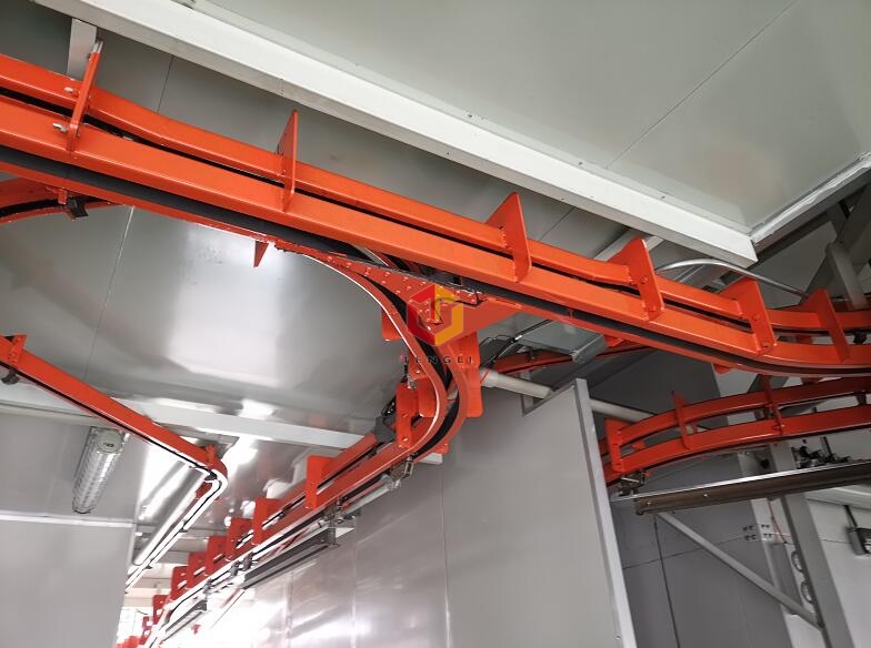 貨架積放式懸掛噴涂線是一種常用的連續輸送設備,廣泛用于在廠內輸送各種成品或半成品的組裝包裝等工序輸送,實現了輸送和工序作業的綜合機械化:其結構主要由牽引鏈條/滑架/吊具/架空軟道/驅動裝置/張緊裝置等組成.廣泛適用于電子、汽車機械、家電、家具等行業。